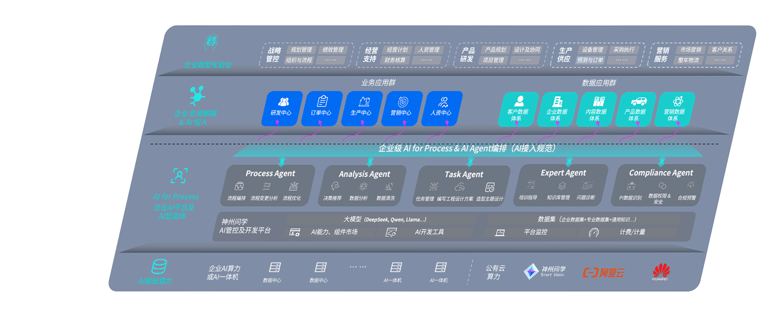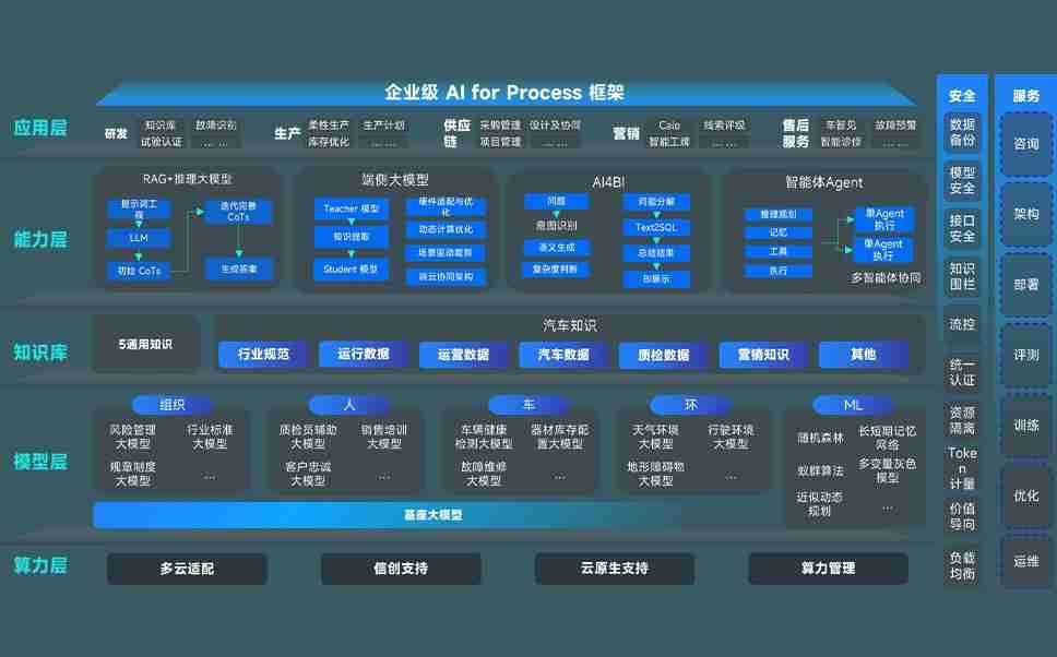 端到端的一站式AI工作空间深度融合了从企业战略规划到日常经营的全流程业务板块,,定向解决车企内部领域多、、、、部门多、、链条长、、场景碎片化等难题,,,支持车企快速构建以AI为核心的生产力写作体系,,实现任务执行与AI能力的无缝集成与交互